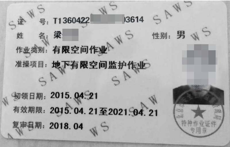 • 有限空間作業(yè)證2