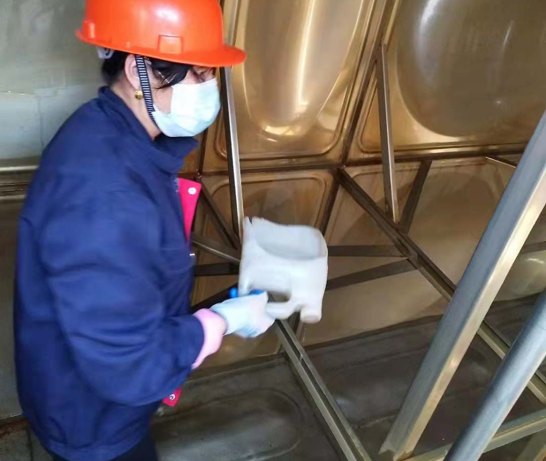 在清洗水箱的過程中,消毒人員須帶護(hù)眼鏡、口罩,如在水箱內(nèi)感到